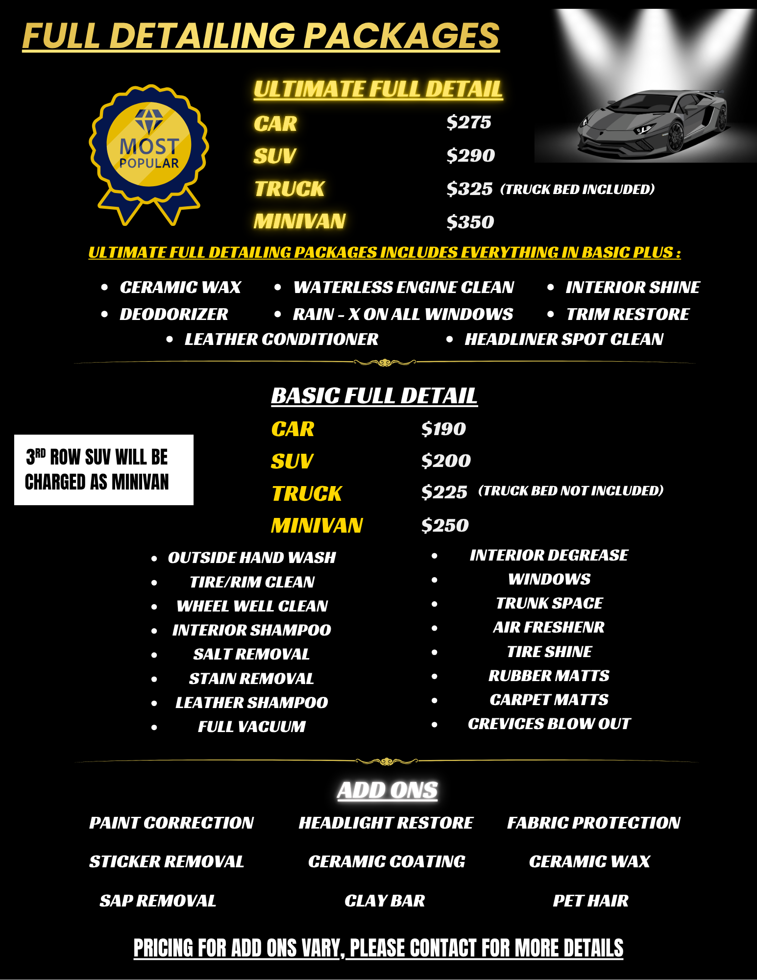 EXAMPLE: ULTIMATE DETAIL/HONDA CIVIC/ NOV 19 10AM